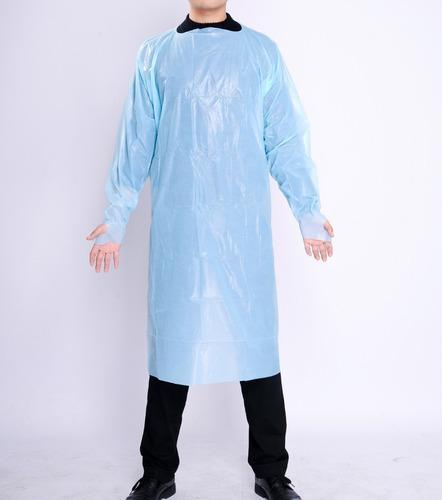 Elemento de protección personal impermeable apto para riesgos físicos y/o químicos. Cubre por completo el tórax frontal, brazos y cintura hasta llegar a las rodillas. La espalda se encuentra descubierta.